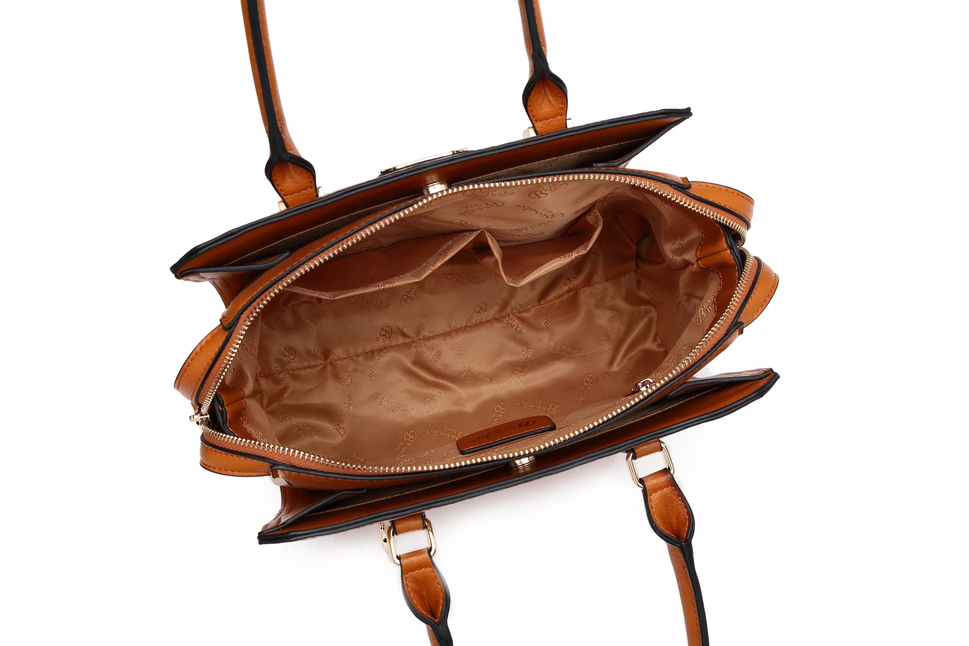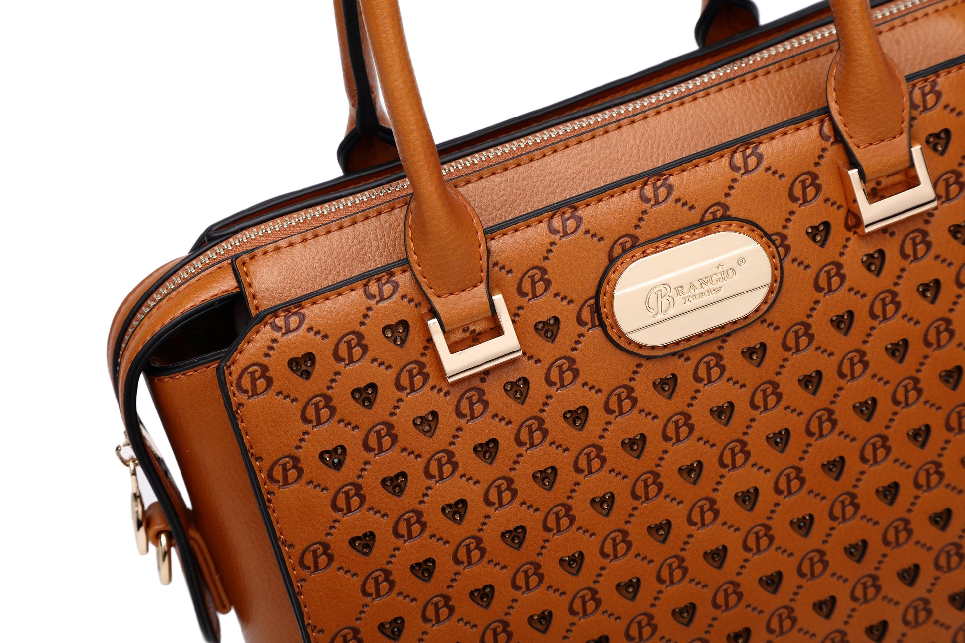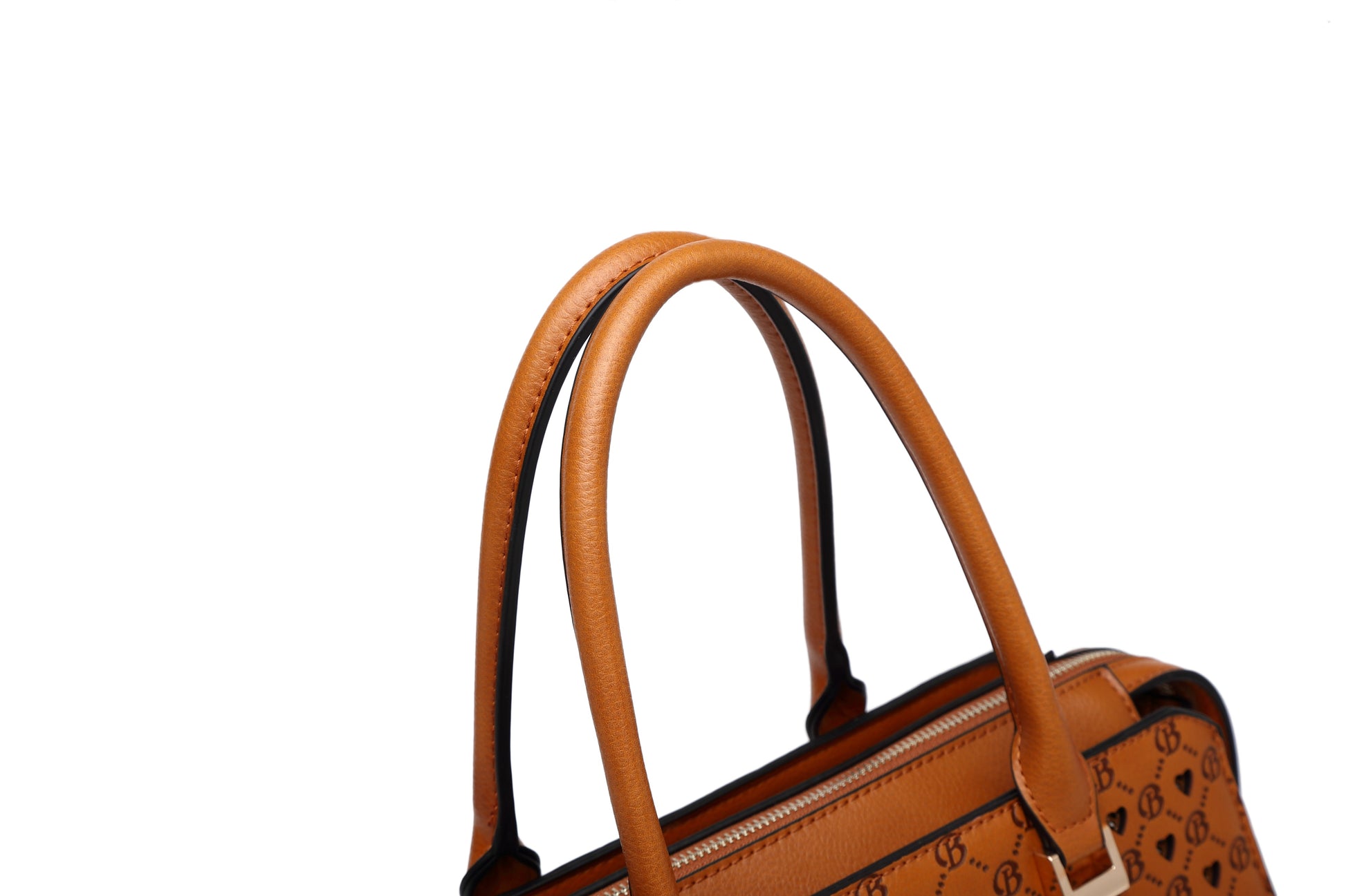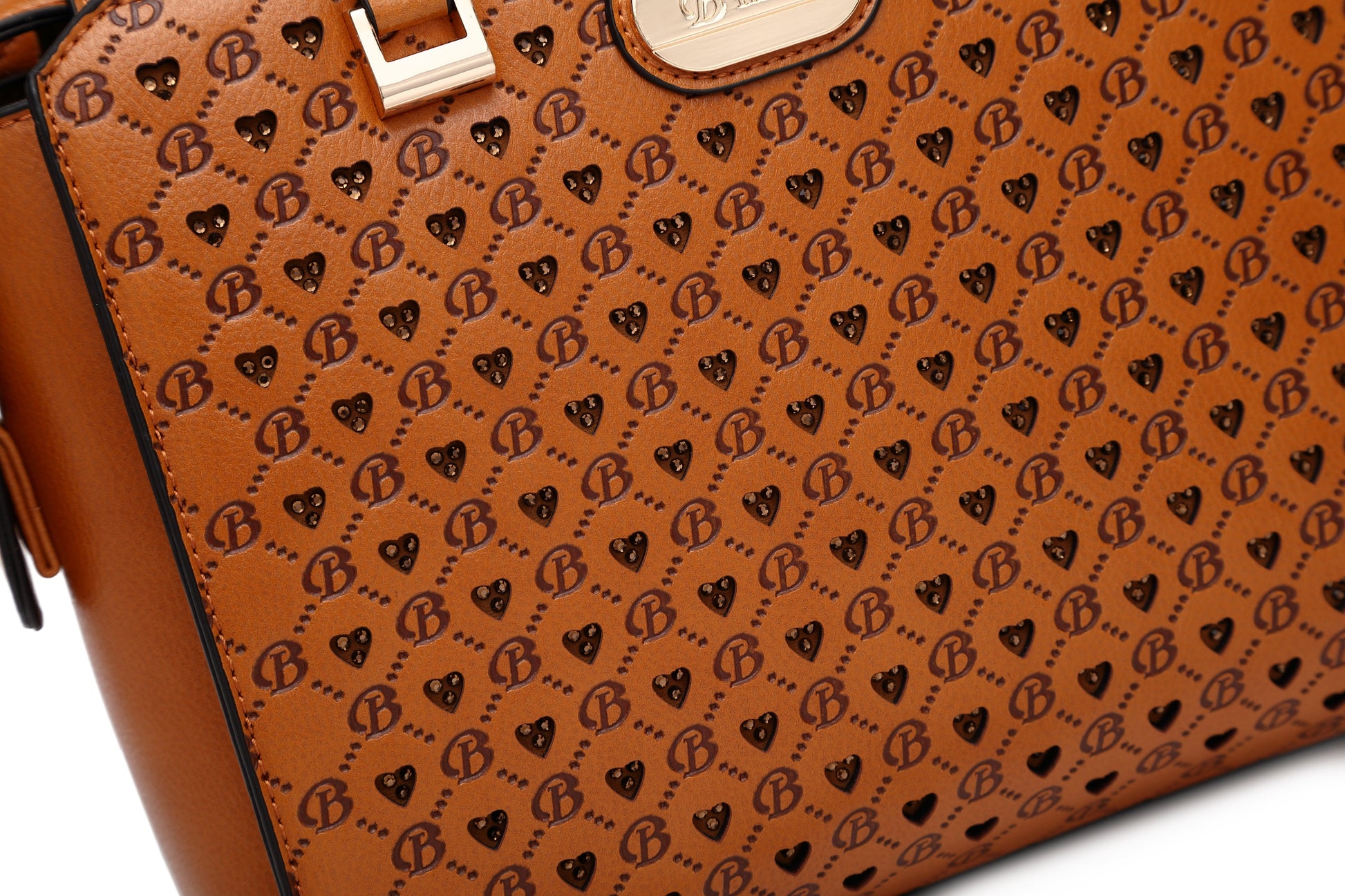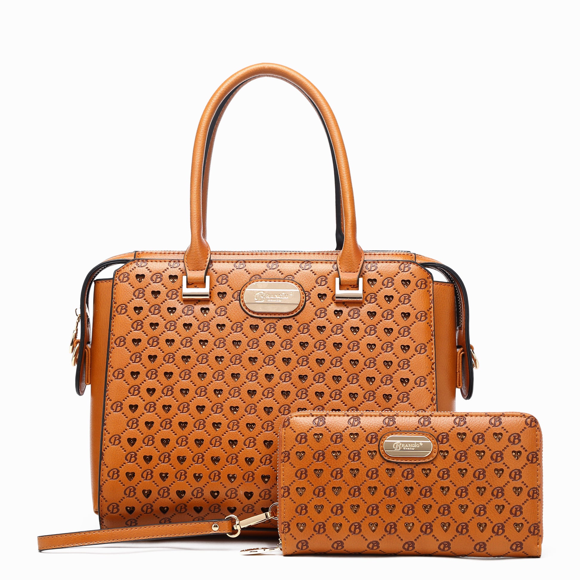 This elegantly structured handbag set is a perfect blend of sophistication and functionality. Featuring a signature monogram print with heart and "B" motifs, this set includes a stylish handbag and a matching wallet for a coordinated look.