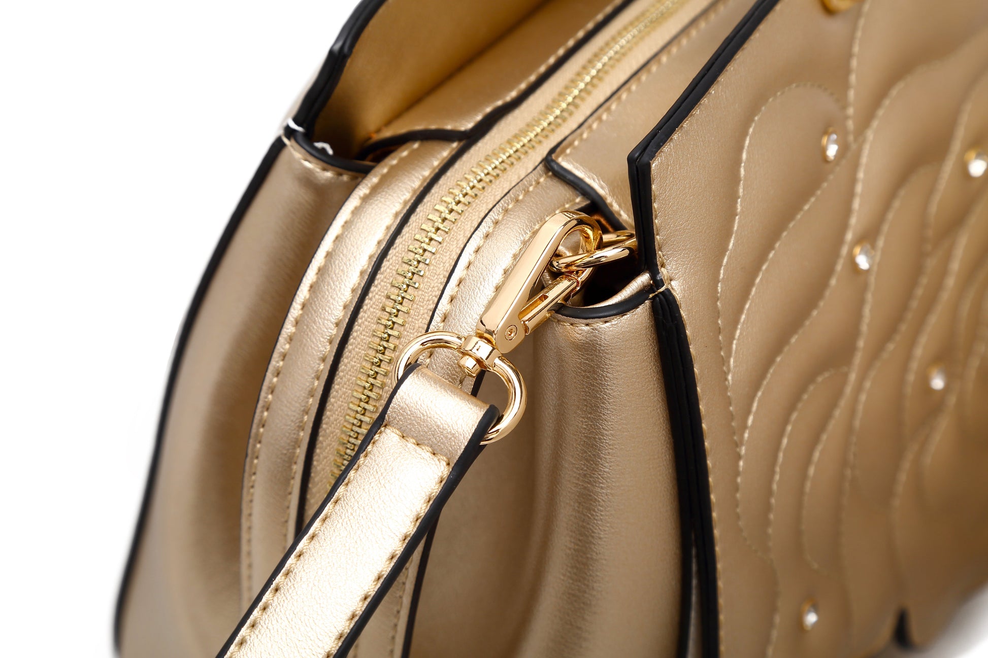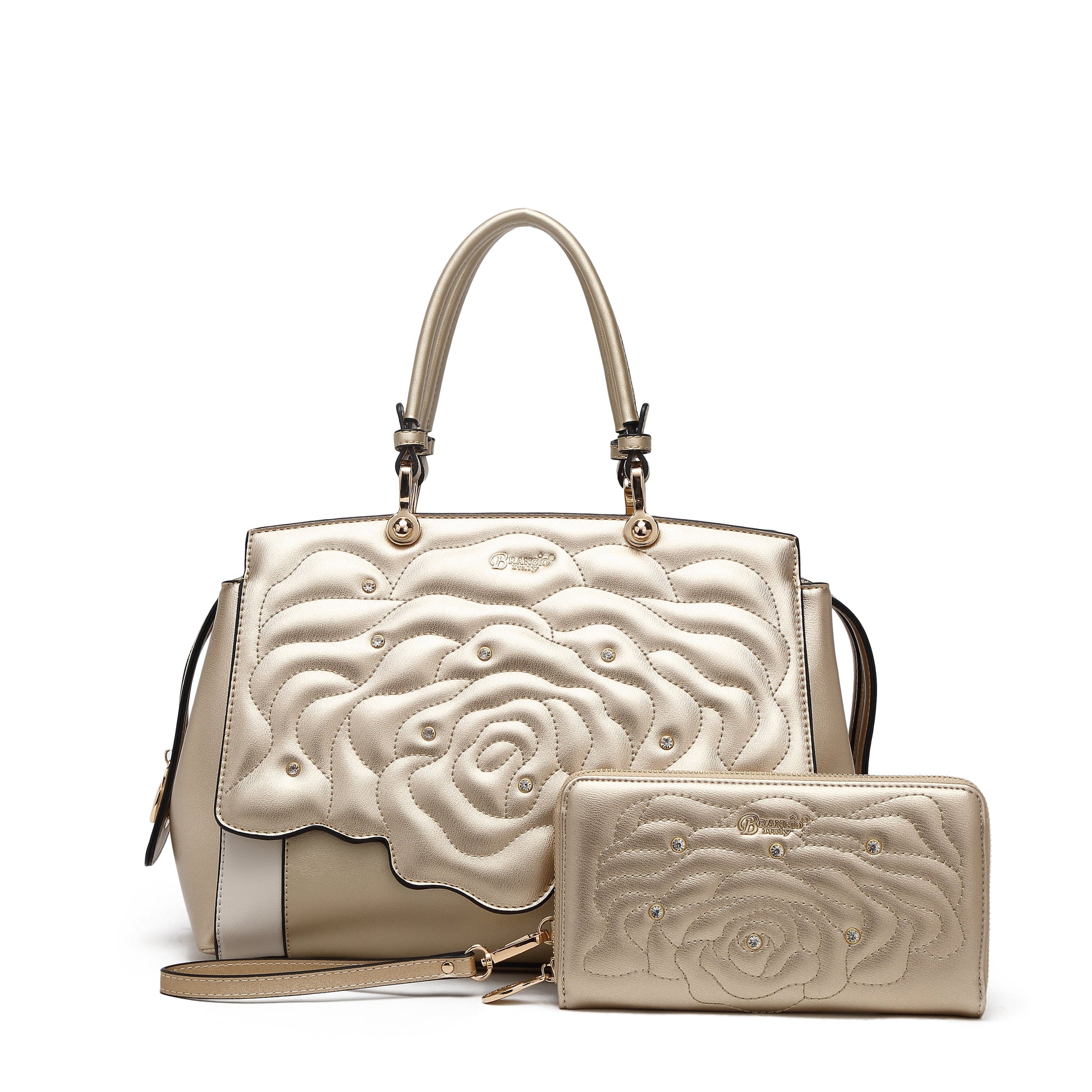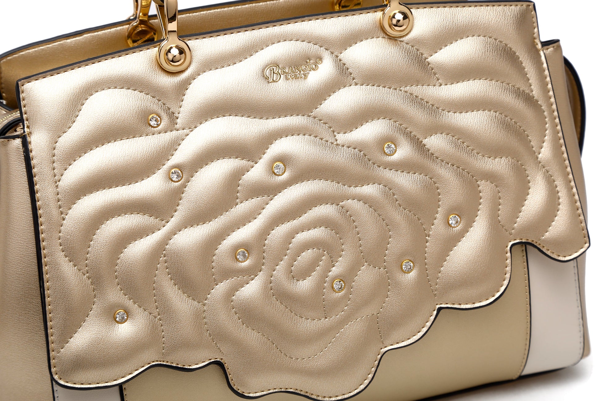 Rosette 3d Crystal Vegan Leather Metallic Handbag